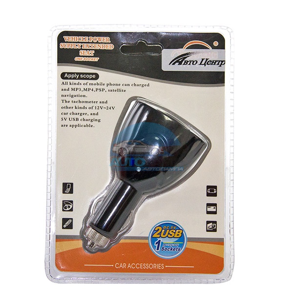 Автомобильный разветвитель в прикуриватель 1 разъем, 2 USB ZXQ-0098 (Черный)