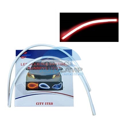Гибкие дневные ходовые огни тонкие 12v 60 см  красные