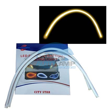 Гибкие дневные ходовые огни тонкие 12v 60 см  желто-белые