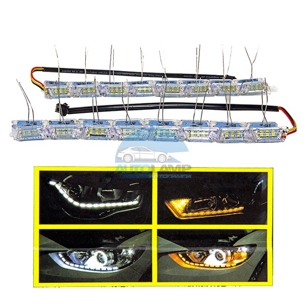 Гибкие дневные ходовые огни тонкие 12v 30 см зеленые