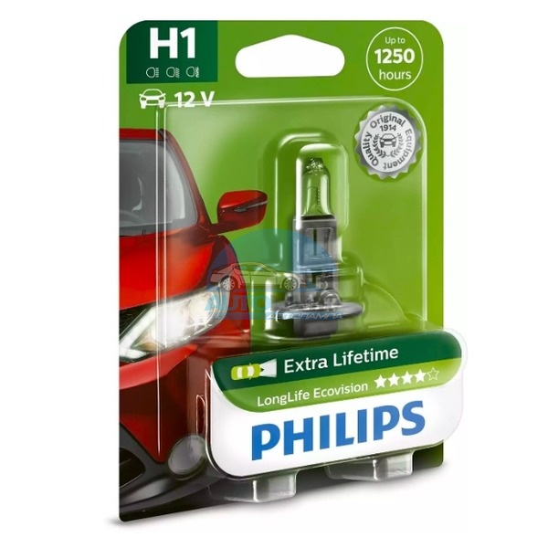 Автолампа PHILIPS H1 12V 55W P14,5s White Vision 3700K (12258WHV), EUROBOX-2шт