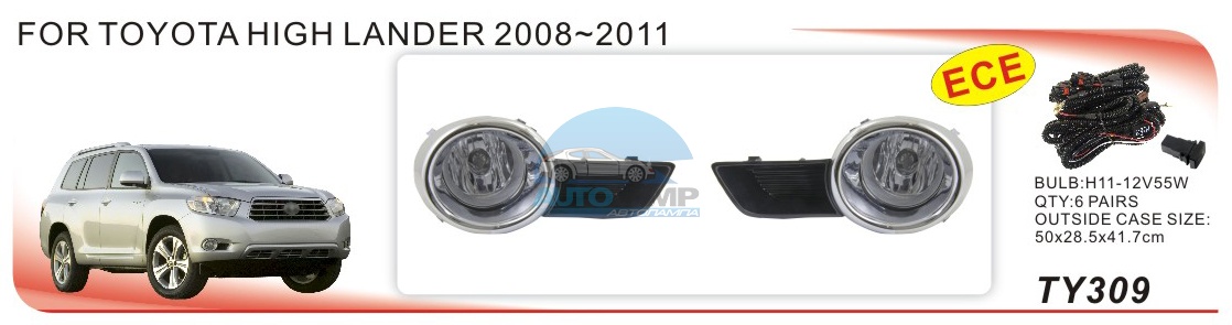 Противотуманные фары ADL/DLAA TY811 Toyota Highlander, Kluger V 2001-2003, без проводов и кнопки