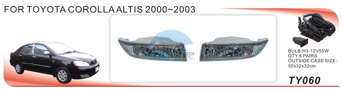 Противотуманные фары ADL/DLAA TY060 (Toyota Corolla 2000-2003г/VIOS 2007-2011г), провода, кнопка